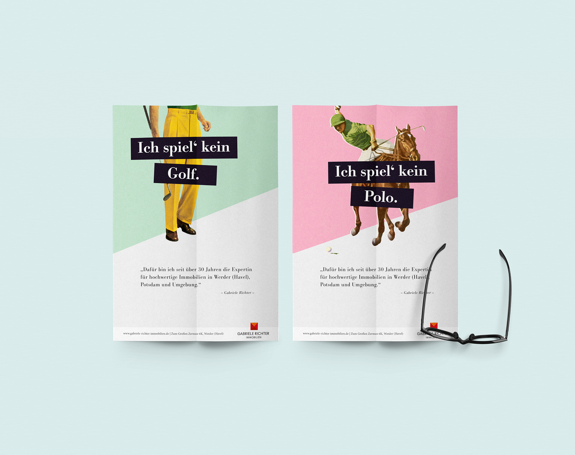 Anzeigenkampagne für eine lokale Immobilienagentur, in Fachzeitschriften für Golf- und Polosport