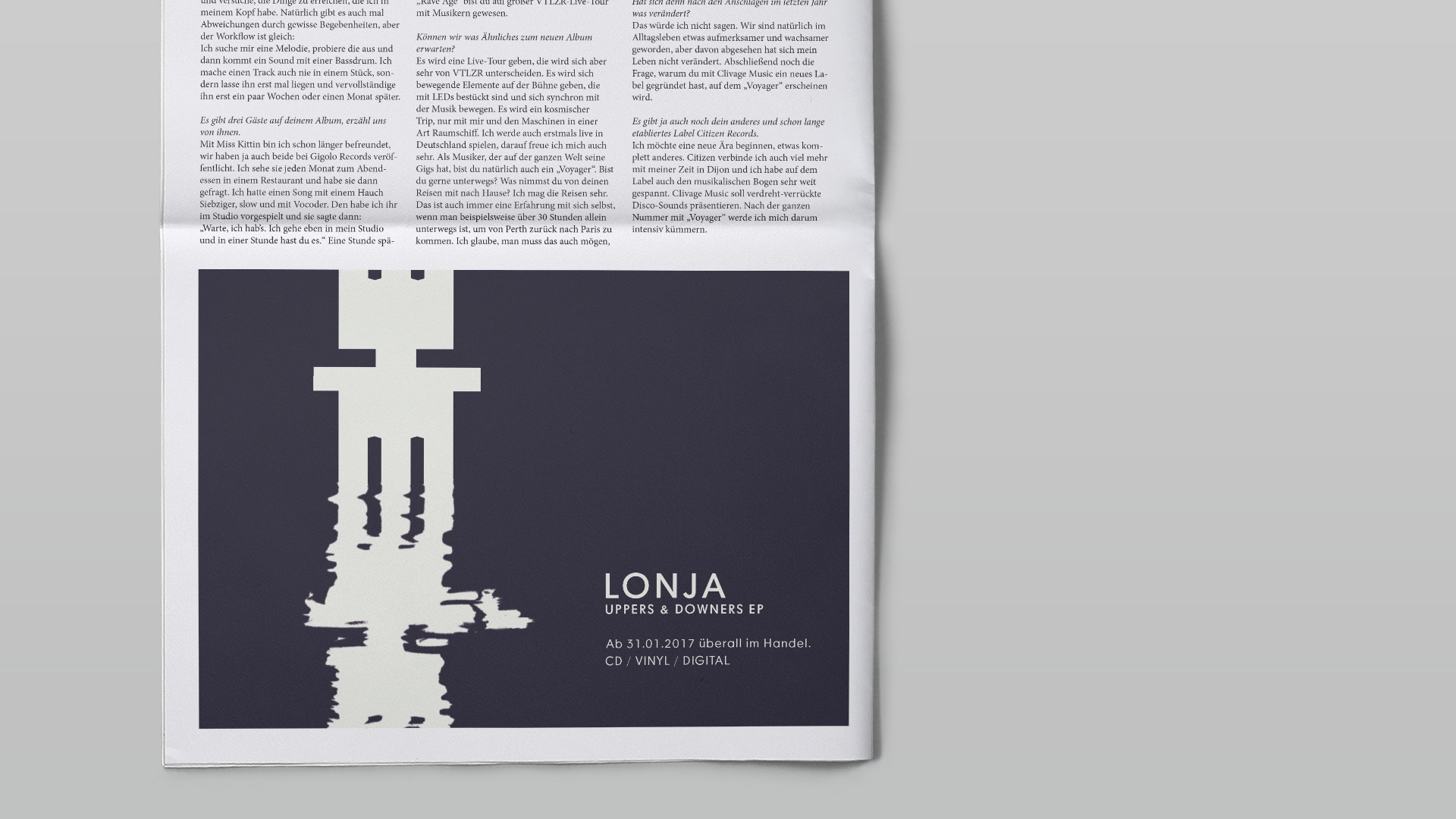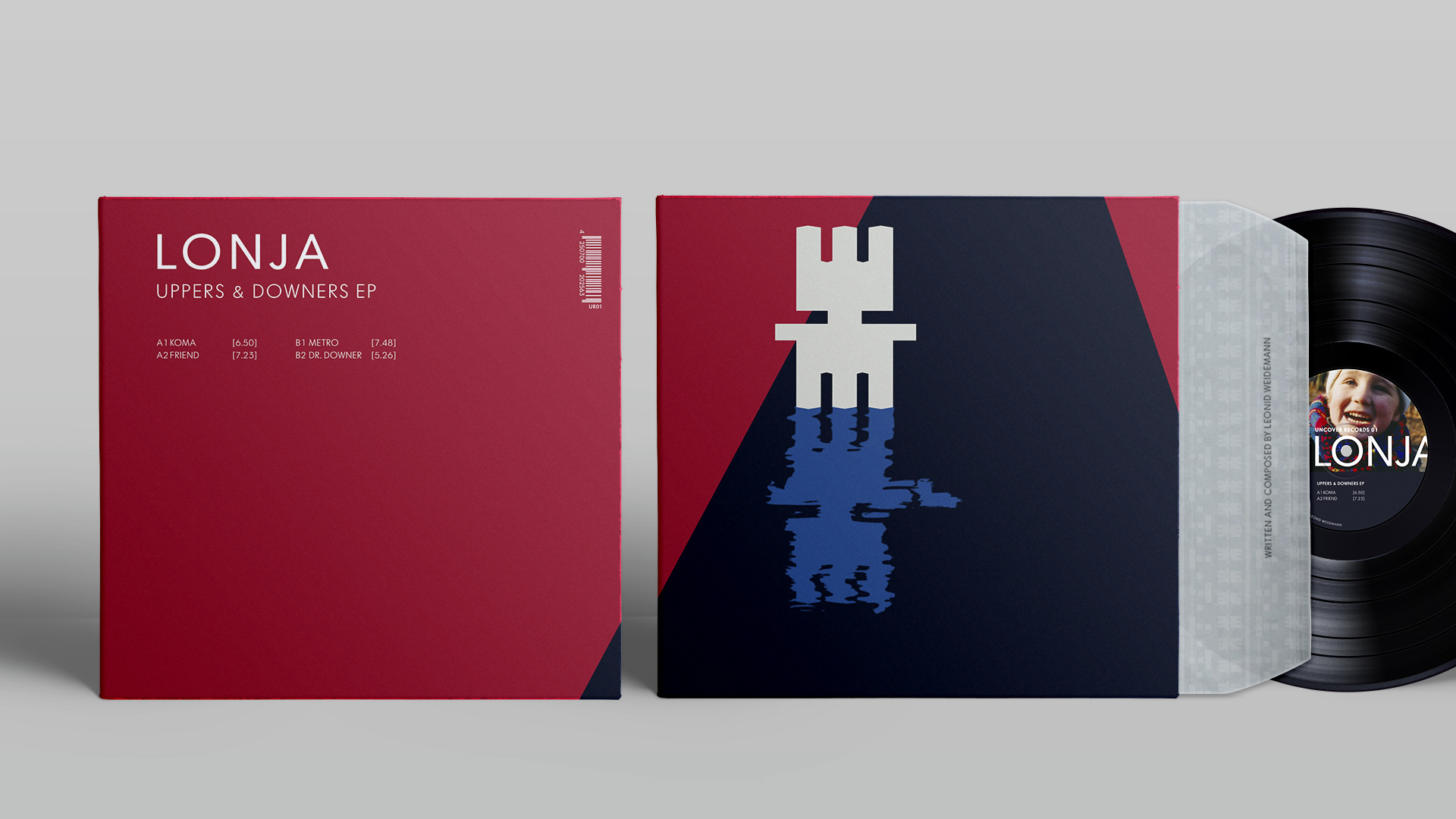 Cover-Artwork, Printanzeige, Plakat und Merch für das Release der EP "Uppers And Downers" des Berliner Techno DJ Leonid Weidemann.